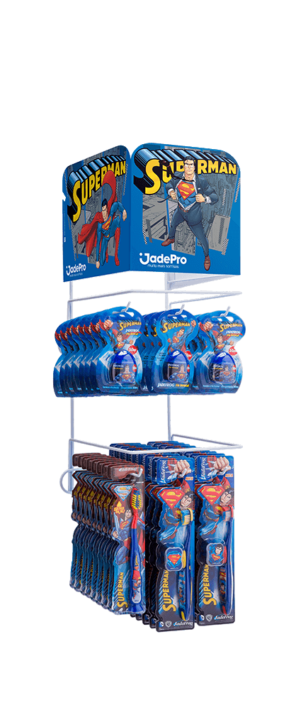 clip strip, wobbler Hello Kitty e Superman, stopper Hello Kitty e Superman, mini display Hello Kitty e Superman.